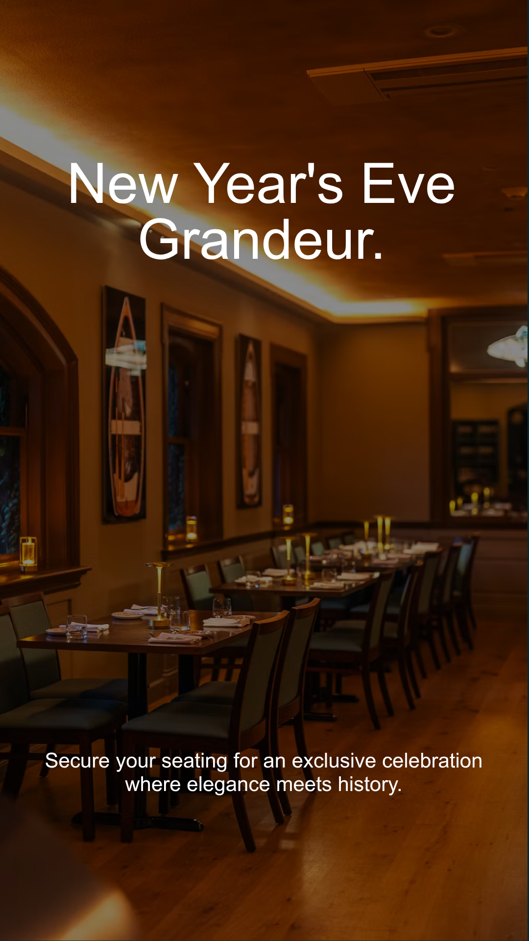 The OpenTable experience link allows you to select your preferred time, note party size, and add any special requests. Because this is a set New Year’s Eve dinner with a defined menu and seating, walk-in availability may be very limited.